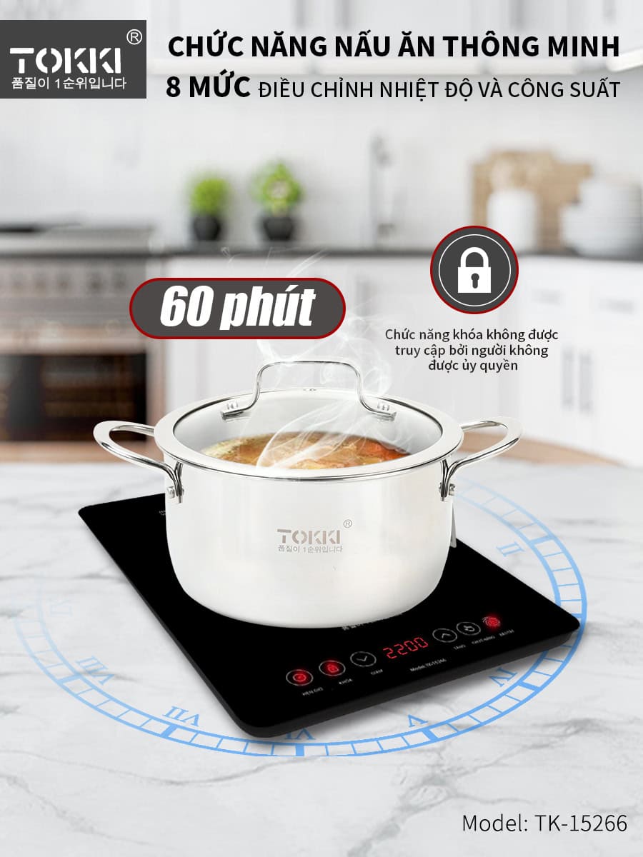 Bếp Từ Đơn TOKKI TK-15266 (2200W) – Tặng Kèm Nồi Lẩu Size 28 Cao Cấp